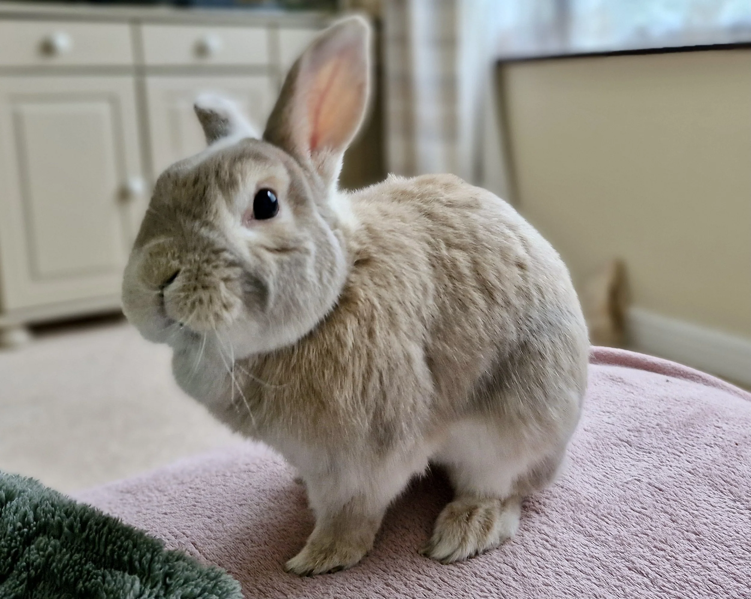 This is my handsome rabbit, Rowan. I rescued him from a house where he was being kept in a cupboard, and now he lives like a prince! Rowan keeps me company in my studio and is always full of mischief and happiness, reminding me to smile every day!